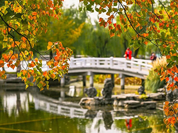 この"映え"ナンキンハゼ、今がいちばん美しい! 莫愁湖公園(モーチョウここうえん)は南京を代表する歴史文化名園で、「金陵第一の名勝」とも称される名所です。南朝時代の莫愁女の伝説に由来し、園内には美しい湖景色だけでなく、勝棋楼や郁金堂といった歴史的遺構も残され、自然美と人文的魅力を兼ね備えています。