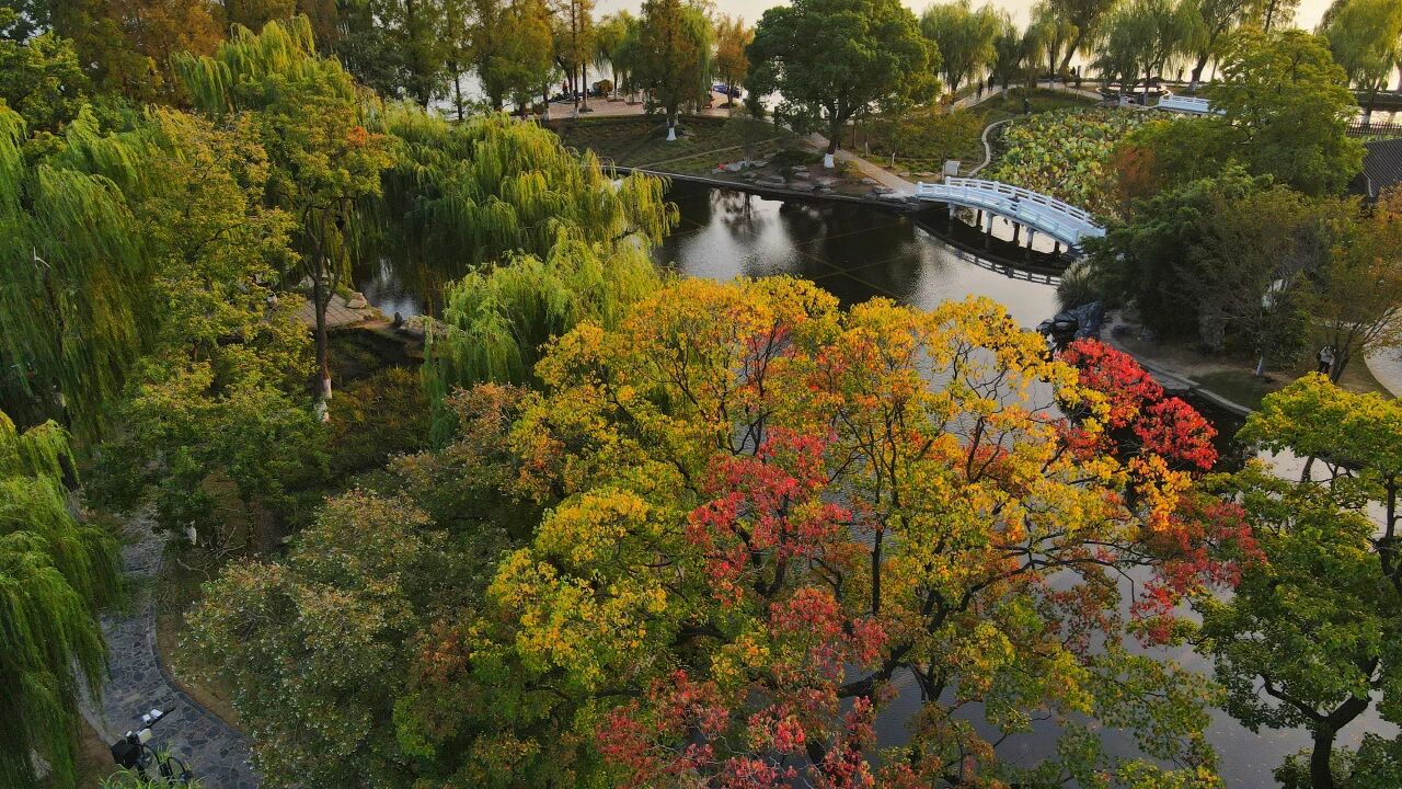 この"映え"ナンキンハゼ、今がいちばん美しい! 莫愁湖公園(モーチョウここうえん)は南京を代表する歴史文化名園で、「金陵第一の名勝」とも称される名所です。南朝時代の莫愁女の伝説に由来し、園内には美しい湖景色だけでなく、勝棋楼や郁金堂といった歴史的遺構も残され、自然美と人文的魅力を兼ね備えています。毎年晩秋になると、夏の青々とした景色が秋色へと移り変わり、市民や観光客に人気の紅葉スポットとなります。